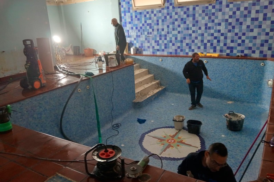 Restauración completa de spa, baños, garajes y sala técnica en Catarroja tras la Dana. Mejora de instalaciones y puesta a punto final.
